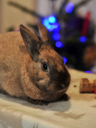 Nox is a beautiful, brown bunny who is full of spunk and very outgoing. She has a bit of an attitude, but once she gets to know you, she warms right up and enjoys head pets and kisses. While she does not ENJOY being held, she tolerates it well.